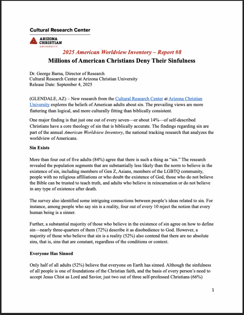 I spoke with Dr. George Barna, director of research at the Cultural Research Center at Arizona Christian University about findings on this topic from the 2025 American Worldview Inventory.